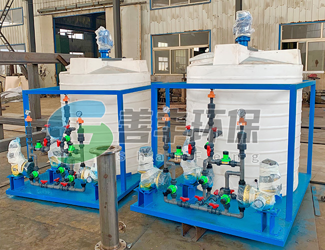 1、加藥裝置配置的溶液箱、計量泵以及系統管路均根據需要客戶實際情況設計,管件采用了防腐設計、壽命長