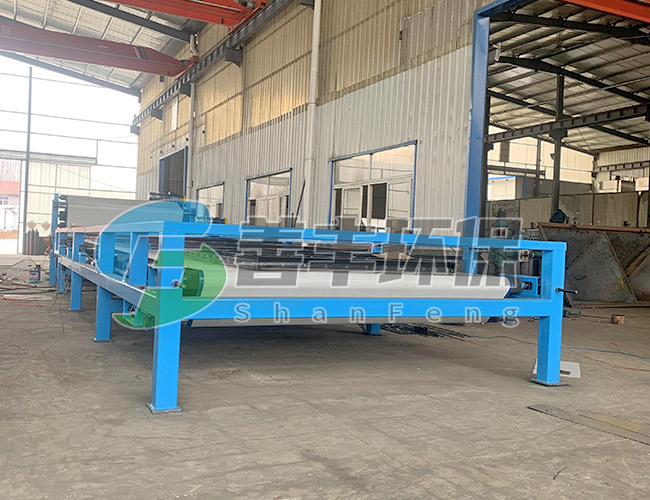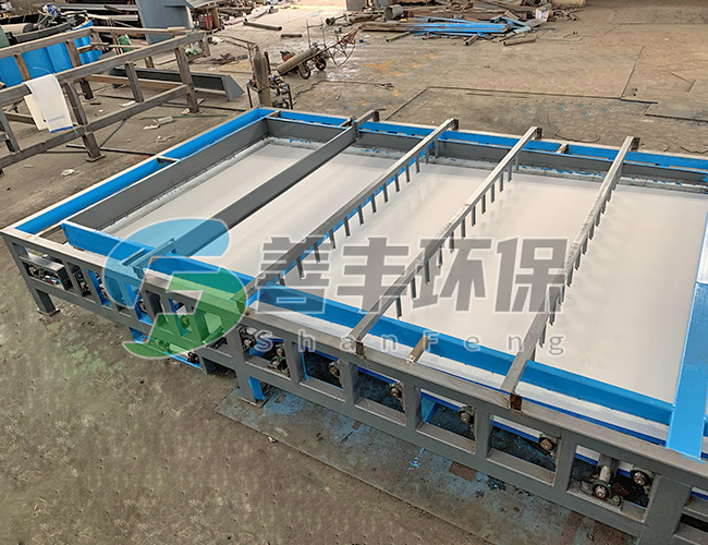 分體式濃縮帶式壓濾機(SF2000FT—SF3500FT):由于采用分體式結構,可根據污泥的含水濃度和用戶的需求,濃縮機的長度可在較大范圍內變動,處理量特別大,特別適用大型礦山尾泥、大型洗砂場,石場制砂泥漿脫水、陶瓷原料泥漿、洗山砂、土包沙泥漿脫水、河道清淤等工業污泥深度脫水處理和大型污水廠的使用。
