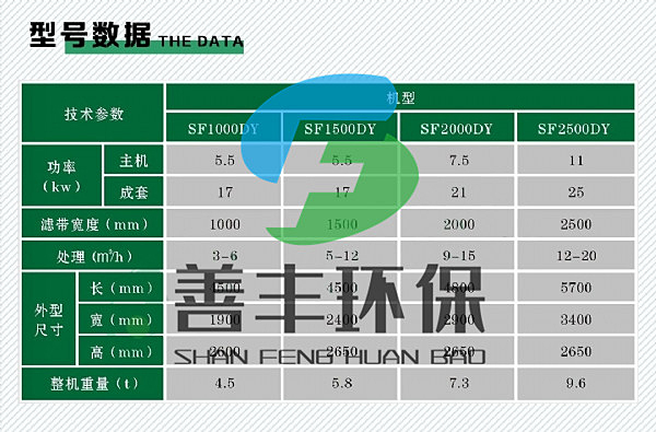 2、功能特點:處理量比普通機大1.5左右,濾餅含水率比普通機型小10%以上。使用范圍廣,主要適用于大型礦山尾泥、大型洗砂場,石場制砂泥漿脫水、陶瓷原料泥漿、洗山砂、土包沙泥漿脫水、河道清淤等工業污泥深度脫水處理和大型污水廠的使用。