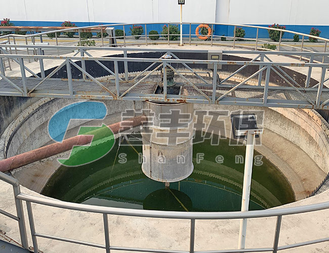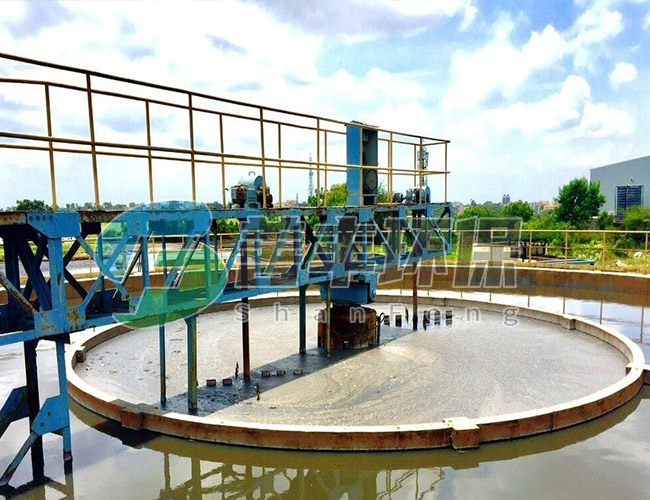 中心傳動驅動機構推動刮泥機構沿中心旋轉,固定于刮臂上的刮板將泥由池邊逐漸刮至池中心的集泥斗中。刮泥板曲線對數螺旋線形,受力均勻,刮泥干凈,當池底遇有障礙時,能自動提耙,保護機器不受傷害,驅動機構可有扭矩保護裝置,工作更加安全。