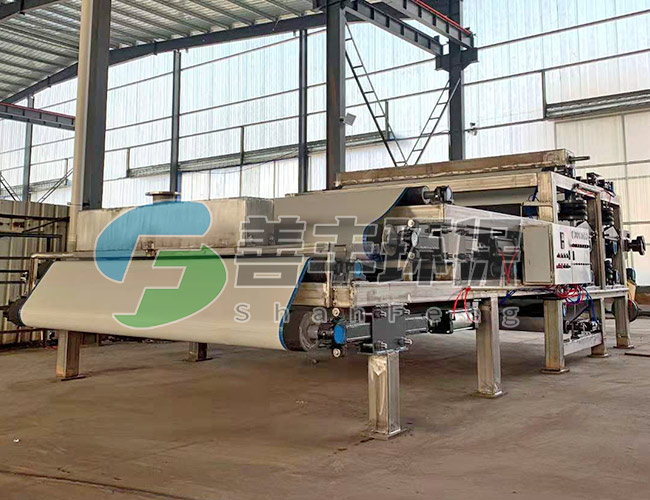 帶式污泥脫水機是一種新型高連續運行的固液分離設備。它以聚脂網作為過濾介質,能把經過予處理含水率在99.5 以下的各種懸浮液,經過多級壓榨脫水成泥餅狀(其脫水后含水率隨不同物料而異)。