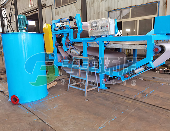 帶式污泥脫水機是一種新型高連續運行的固液分離設備。它以聚脂網作為過濾介質,能把經過予處理含水率在99.5 以下的各種懸浮液,經過多級壓榨脫水成泥餅狀(其脫水后含水率隨不同物料而異)。