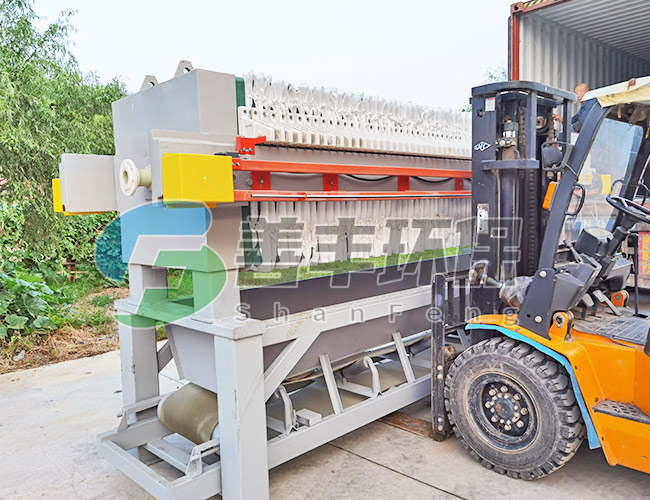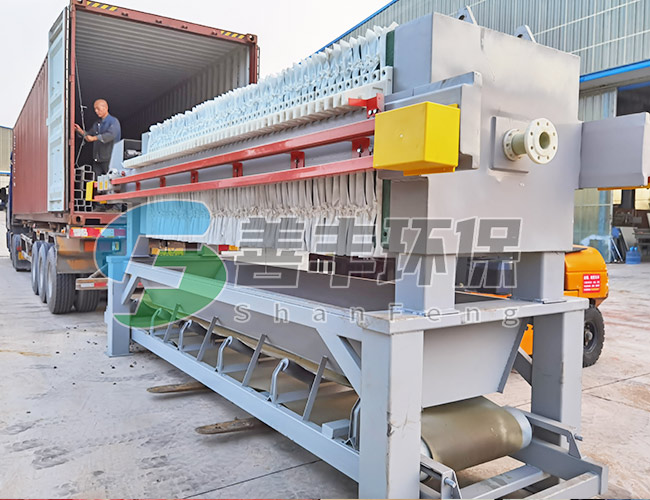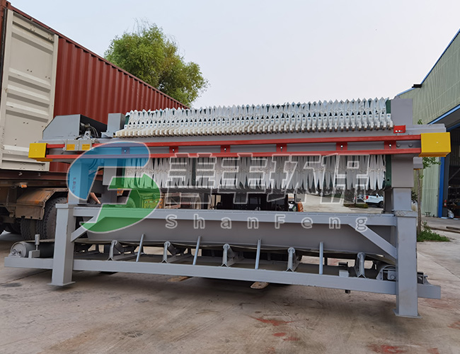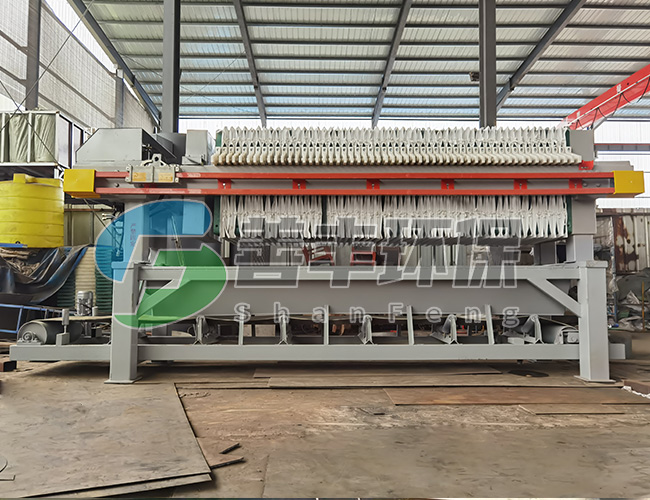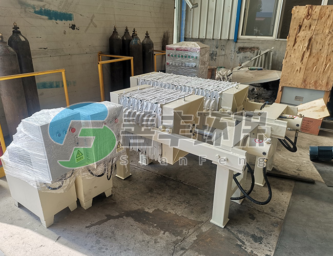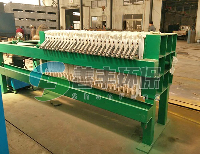 懸浮液用料泵送入濾機每個密閉的濾室,在壓力作用下,濾液透過濾層及濾布,經濾布出液口排出,濾渣則留在濾框內,從而達到固液分離的目的。