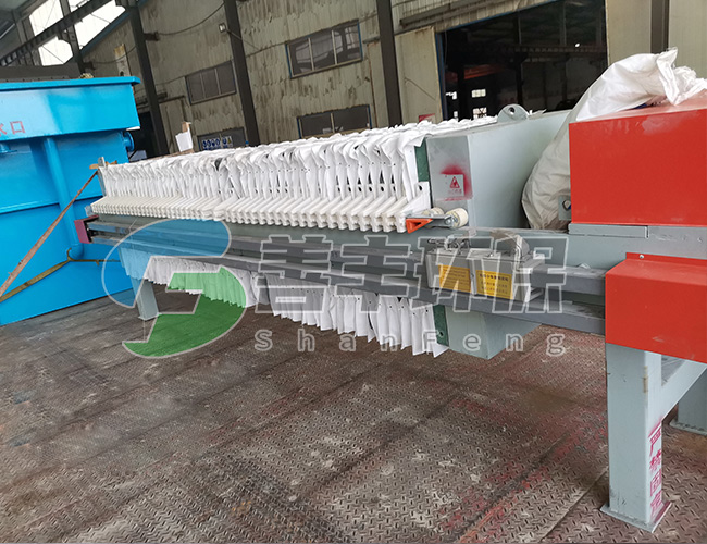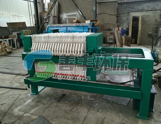 懸浮液用料泵送入濾機每個密閉的濾室,在壓力作用下,濾液透過濾層及濾布,經濾布出液口排出,濾渣則留在濾框內,從而達到固液分離的目的。