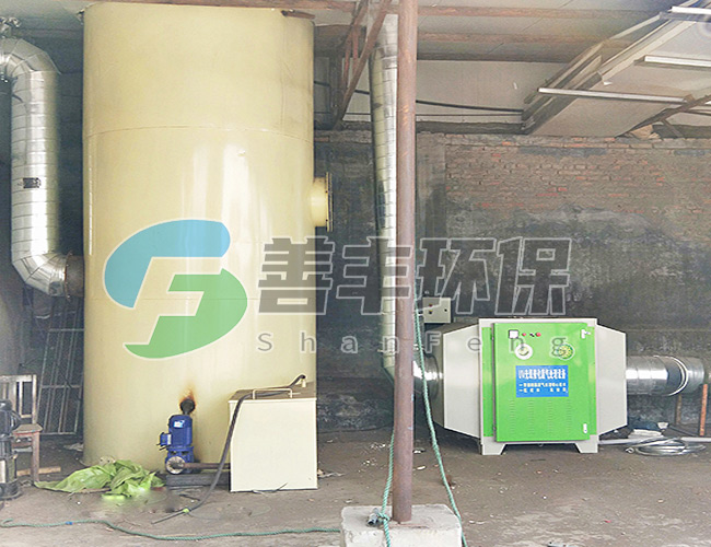 廢氣處理的工藝流程;排出的酸霧廢氣進(jìn)入風(fēng)管一經(jīng)過酸堿廢氣處理塔→風(fēng)機(jī)→風(fēng)管達(dá)標(biāo)排放。
