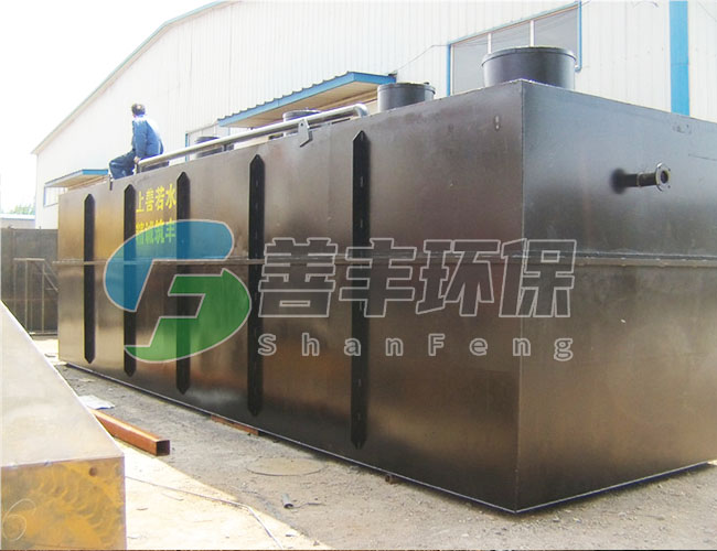 污水由排水系統(tǒng)收集后,進入污水處理站的格柵井,去除顆粒雜物后,進入調(diào)節(jié)池,進行均質(zhì)均量,再經(jīng)液位控制儀傳遞信號,由提升泵送至A級生物接觸氧化池,進行酸化水解和硝化反硝化,降低有機物濃度,去除部分氨氮,然后入流O級生物接觸氧化池進行好氧生化反應(yīng),在此絕大部分有機污染物通過生物氧化、吸附得以降解,出水自流至二沉池進行固液分離后,沉淀池上清液流入消毒池,經(jīng)投加氯片接觸溶解,殺滅水中有害菌種后達標外排。由格柵截留下的雜物定期裝入小車傾倒至垃圾場,二沉池中的污泥部分回流至A級生物處理池,另一部分污泥至污泥池進行污泥消化后定期抽吸外運,污泥池上清液回流至調(diào)節(jié)池再處理。