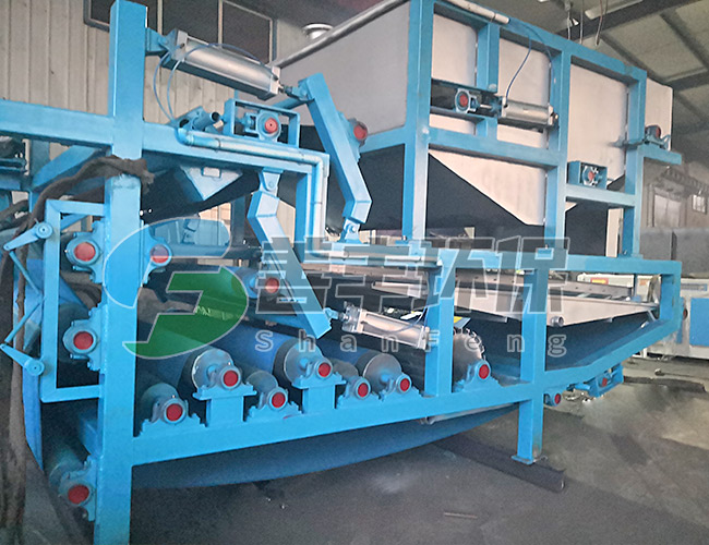 帶式污泥脫水機是一種新型高連續運行的固液分離設備。它以聚脂網作為過濾介質,能把經過予處理含水率在99.5 以下的各種懸浮液,經過多級壓榨脫水成泥餅狀(其脫水后含水率隨不同物料而異)。